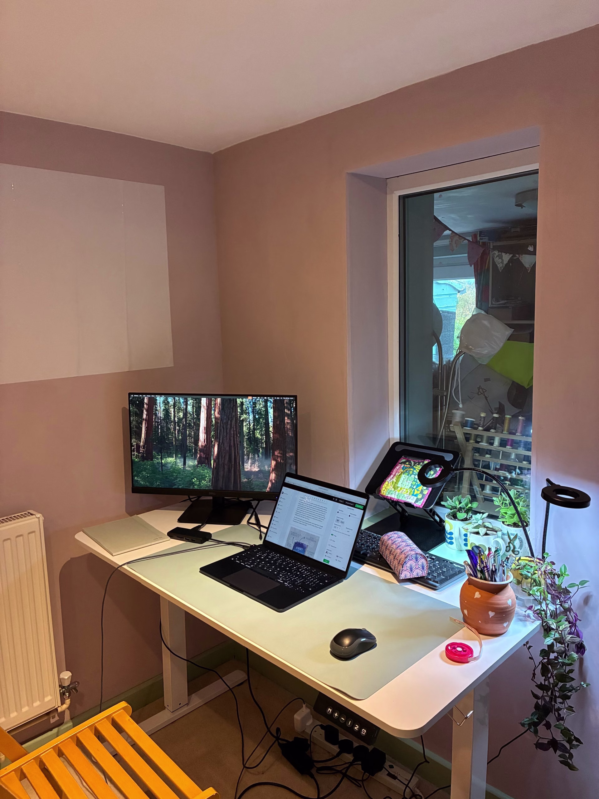 The office decorating has predictably taken much longer than I thought it would. I have been slowly moving my stuff into there, trying to keep it as beautifully neat and curated as the shelf on the left but unfortunately I do have a lot of things I can’t part with so the shelf on the right is the reality of the situation, and that’ll probably only get worse! But I am very pleased with my desk corner and my paint choices, especially the green door. I’m in love with it.