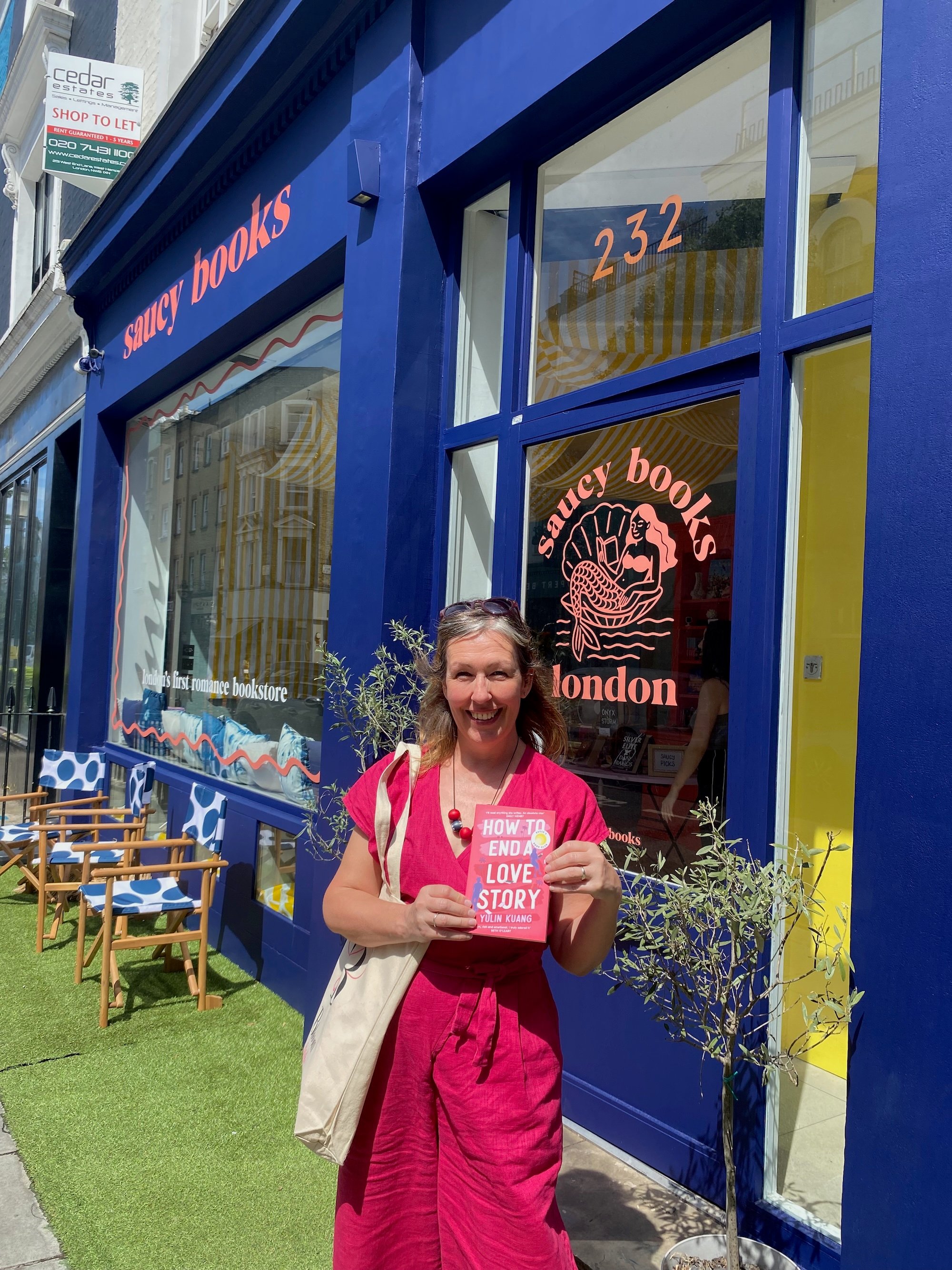 I read some fabulous books on holiday. The one in the photo of me outside Saucy Books is How to End a Love Story by Yulin Kuang. It started off a little bit dark but quickly turns into a brilliantly written story of falling in love with the least likely person in the world. You just can’t see how it’s going to happen but it does, and it’s beautiful. It’s about a novelist whose book is getting made into a TV show – that’s what hooked me, and I was sorry to finish it.